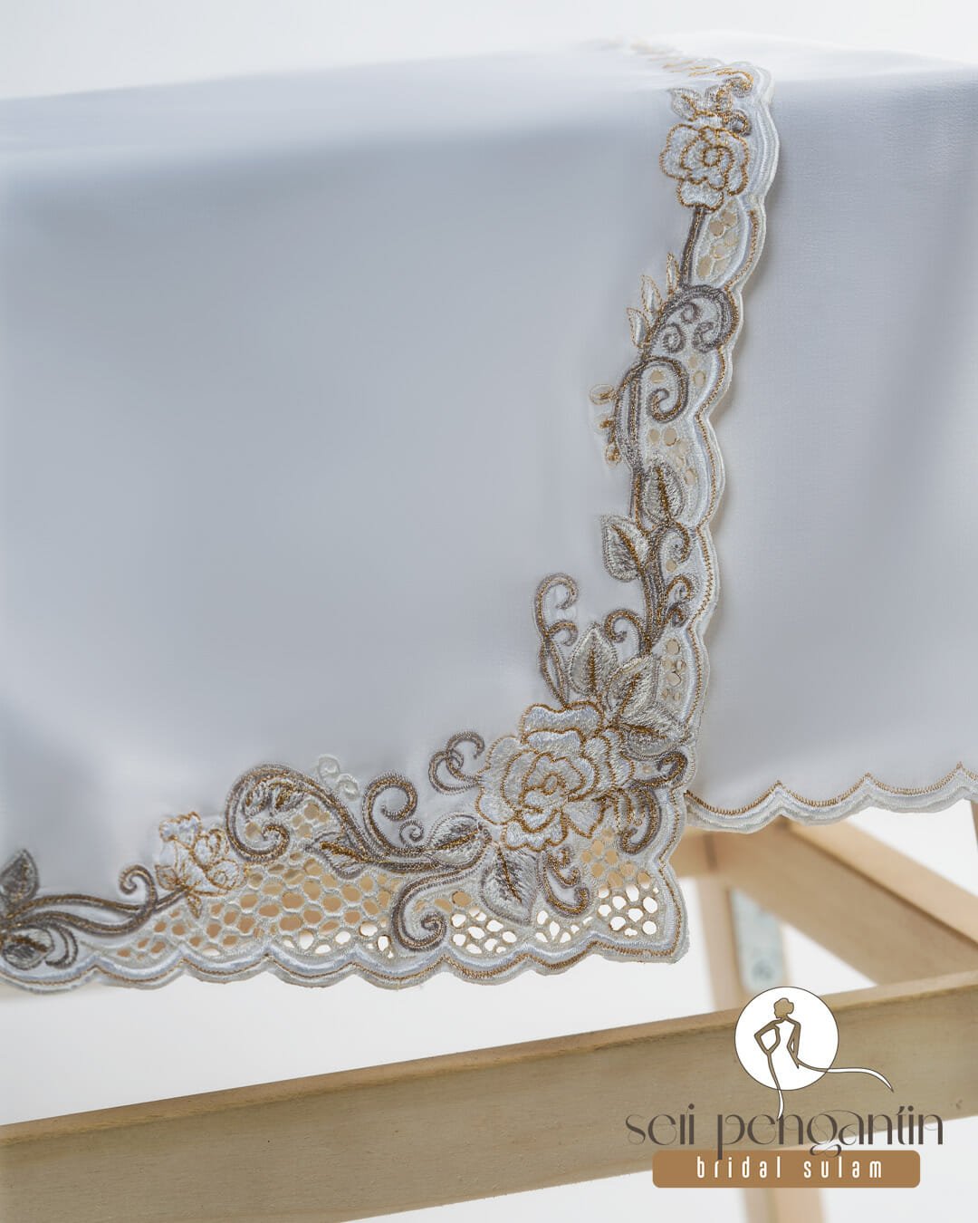 Jadi, sulaman kerawang yang cantik dan senada pada fabrik polos putih ini akan menaikkan lagi seri pemakainya, iaitu bakal pengantin apabila disarungkan pada majlis akad nikahnya nanti. Ia menjadikan pengantin tersebut nampak ayu dan tidak keterlaluan yang sesuai dengan majlis akad nikah yang amat bermakna bagi pasangan yang bergelar raja sehari.